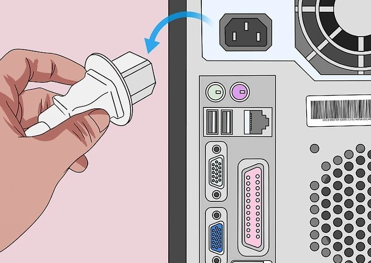 في البداية نقوم بإغلاق جهازك بالكامل وفصل عنه التيار الكهربائي نهائياً